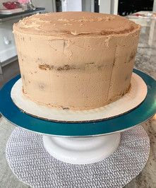 Place the crumb coated cake into the fridge for 15-20 minutes allowing frosting to get nice and firm.